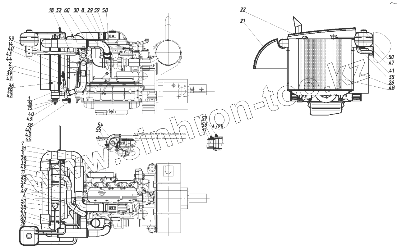 Каталог запасных частей к технике: ЭКСМАШ E160W. Установка радиатора 160-00-28.03.000