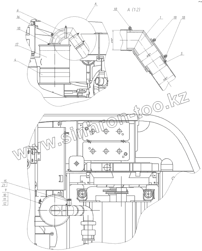 Каталог запасных частей к технике: ЭКСМАШ E160W. Установка воздухоочистителя 130-00-28.04.000