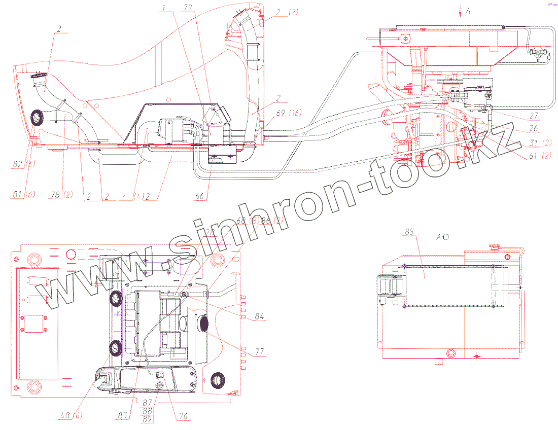 Каталог запасных частей к технике: ЭКСМАШ E170W. Установка кондиционера 316-00-25.00.500