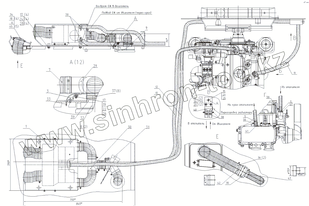 Каталог запасных частей к технике: ЭКСМАШ E180R. Установка отопителя 130-00-25.00.700