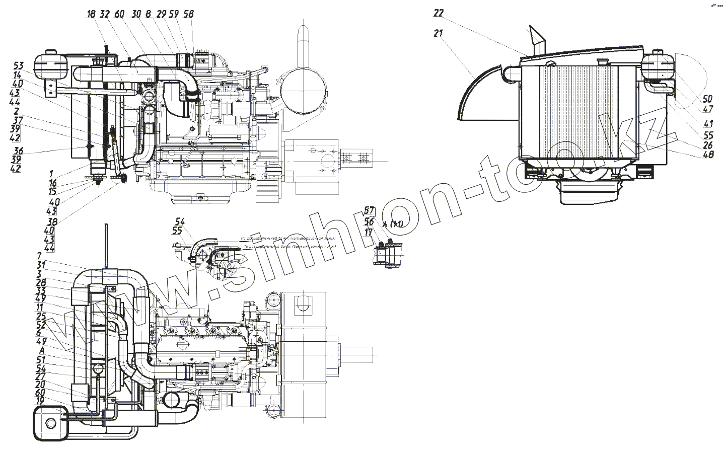 Каталог запасных частей к технике: ЭКСМАШ E180R. Установка радиатора 160-00-28.03.000