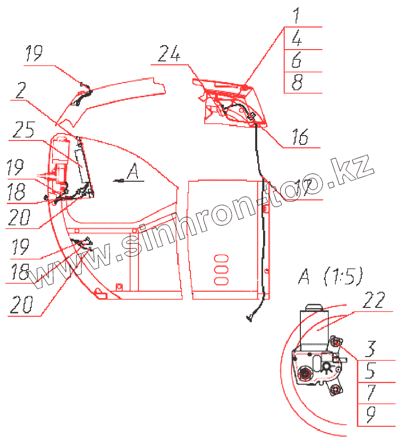 Каталог запасных частей к технике: ЭКСМАШ E195A. Электрооборудование кабины 3523-02-30.30.000