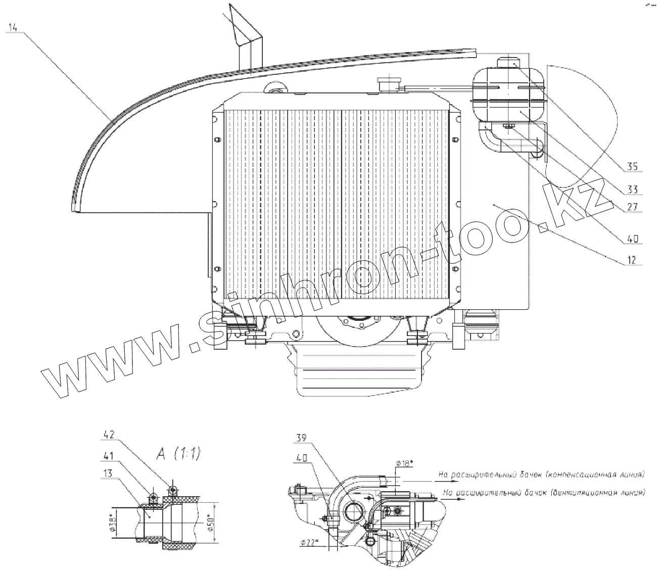 Каталог запасных частей к технике: ЭКСМАШ E195A. Установка радиатора 130-00-28.06.000