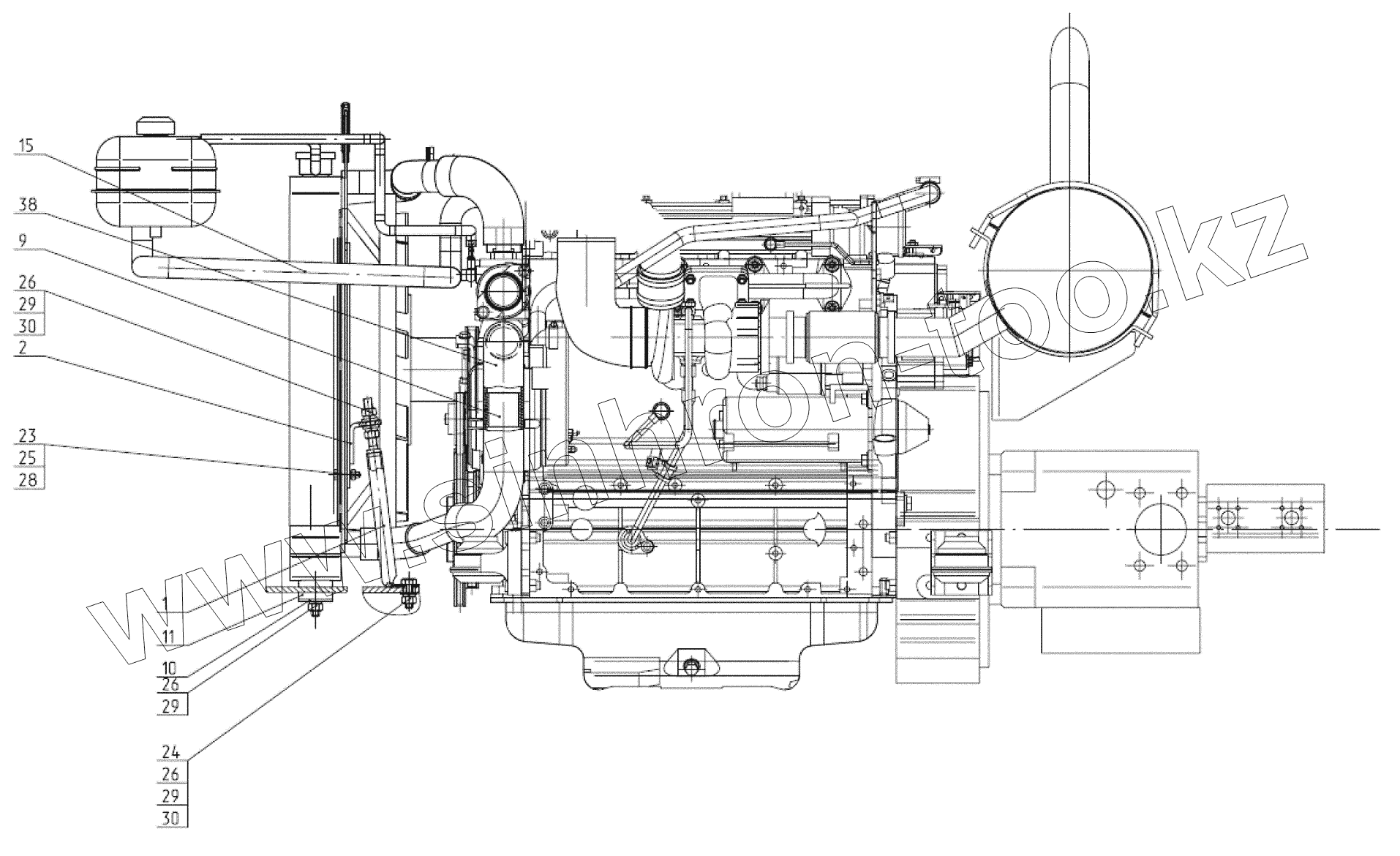 Каталог запасных частей к технике: ЭКСМАШ E195A. Установка радиатора 130-00-28.06.000