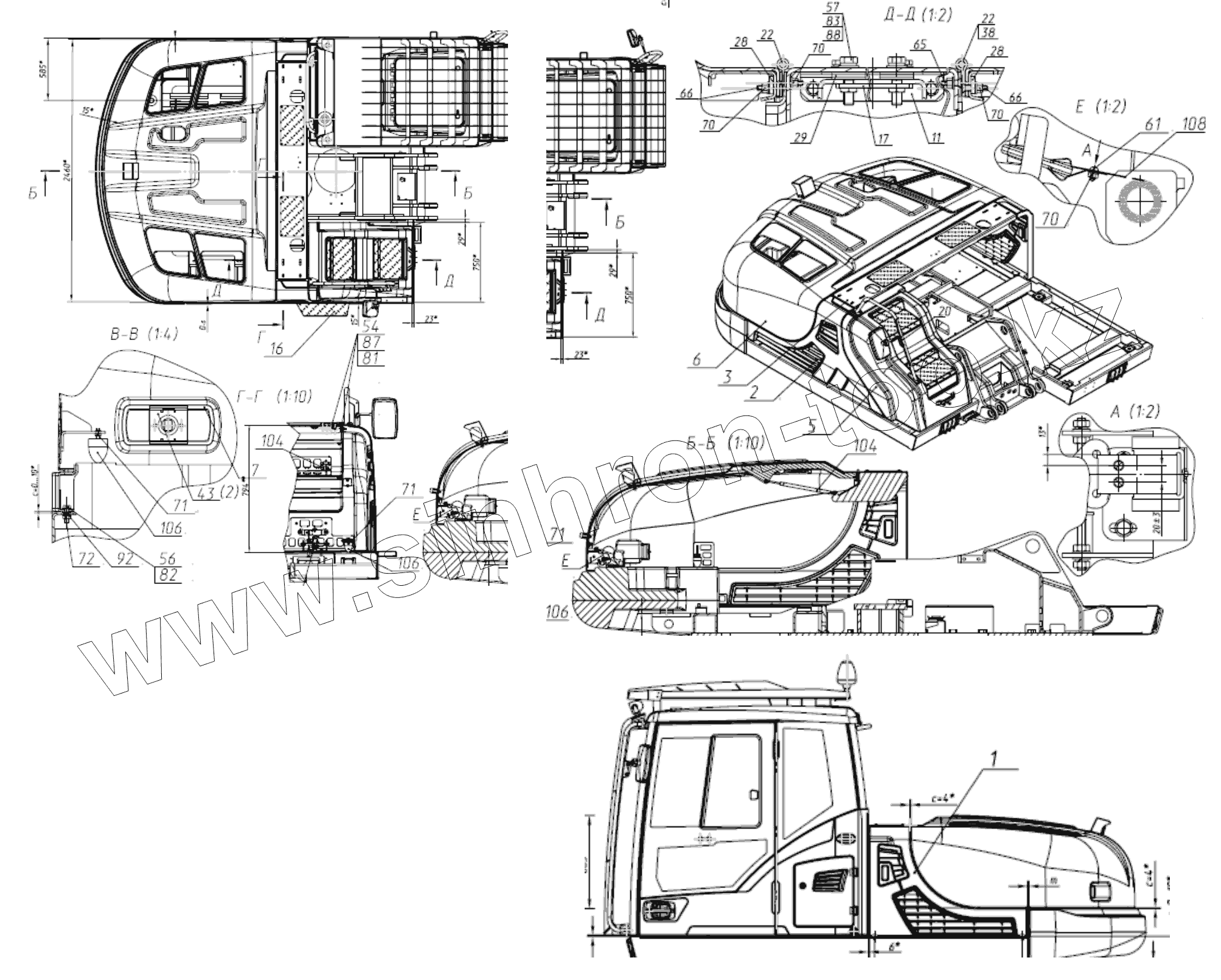 Каталог запасных частей к технике: ЭКСМАШ E220C. 145-00-22.00.000 Установка капотной системы