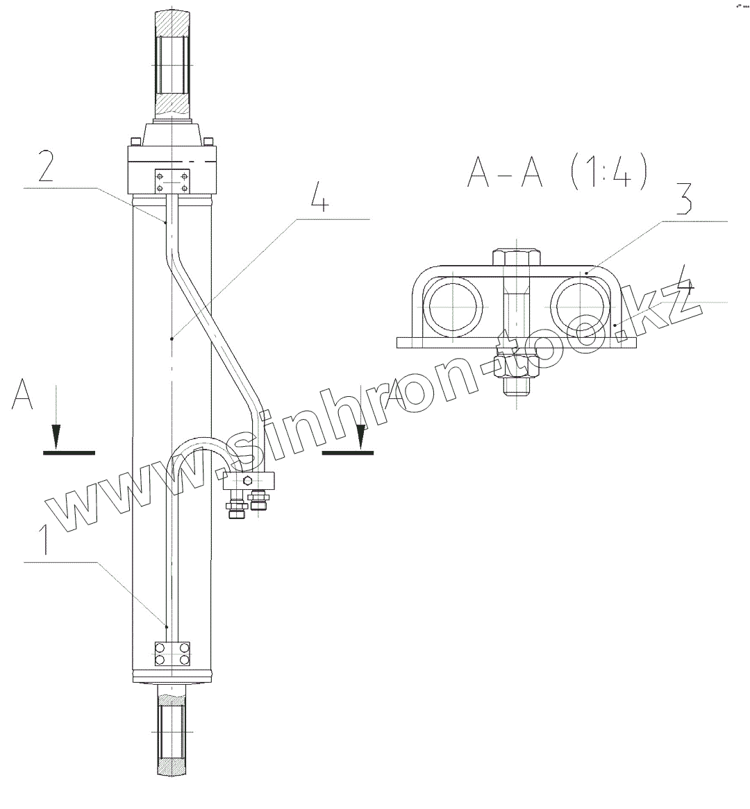Каталог запасных частей к технике: ЭКСМАШ E230W. Гидроцилиндр стрелы правый в сборе