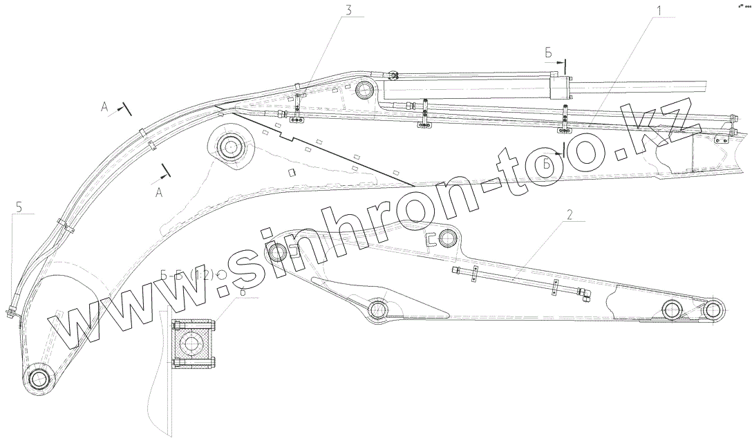 Трубопроводы стрелы в сборе с гидроцилиндром