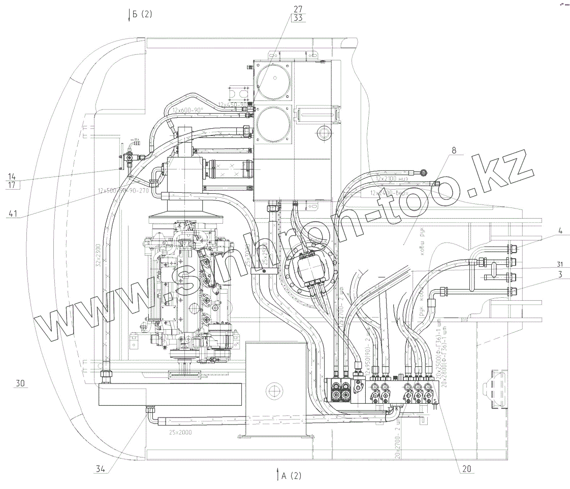 Каталог запасных частей к технике: ЭКСМАШ E230W. Трубопроводы на поворотной платформе