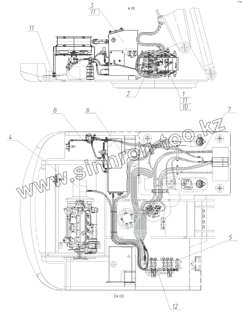 Каталог запасных частей к технике: ЭКСМАШ E230WH. Гидрооборудование на поворотной платформе