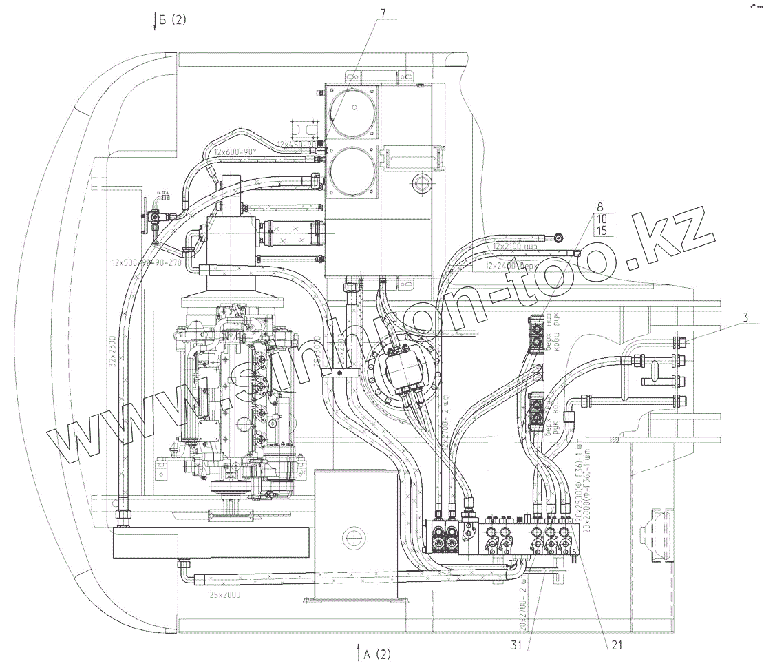 Каталог запасных частей к технике: ЭКСМАШ E230WH. Трубопроводы на поворотной платформе