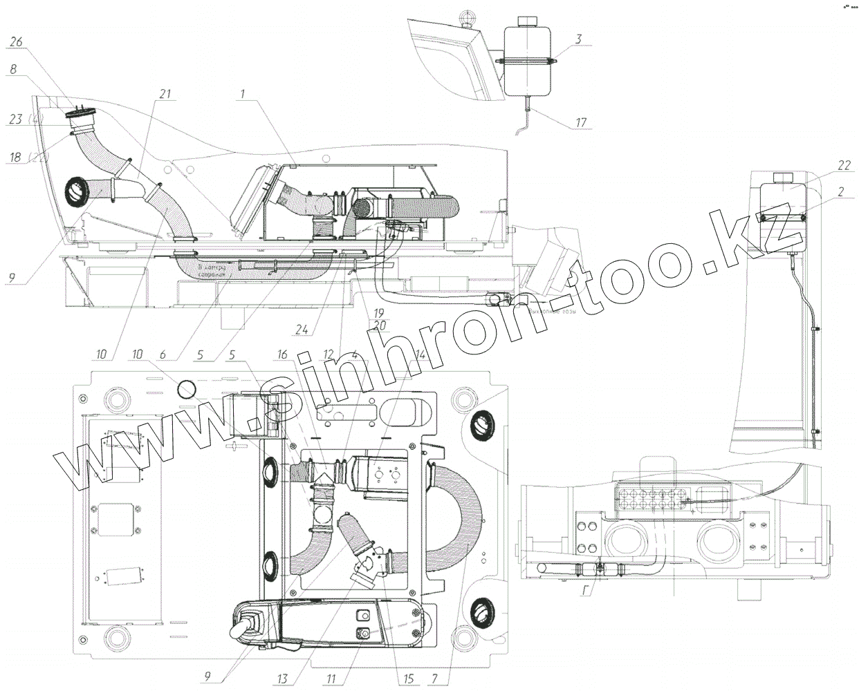Каталог запасных частей к технике: ЭКСМАШ E230WH. Установка отопителя