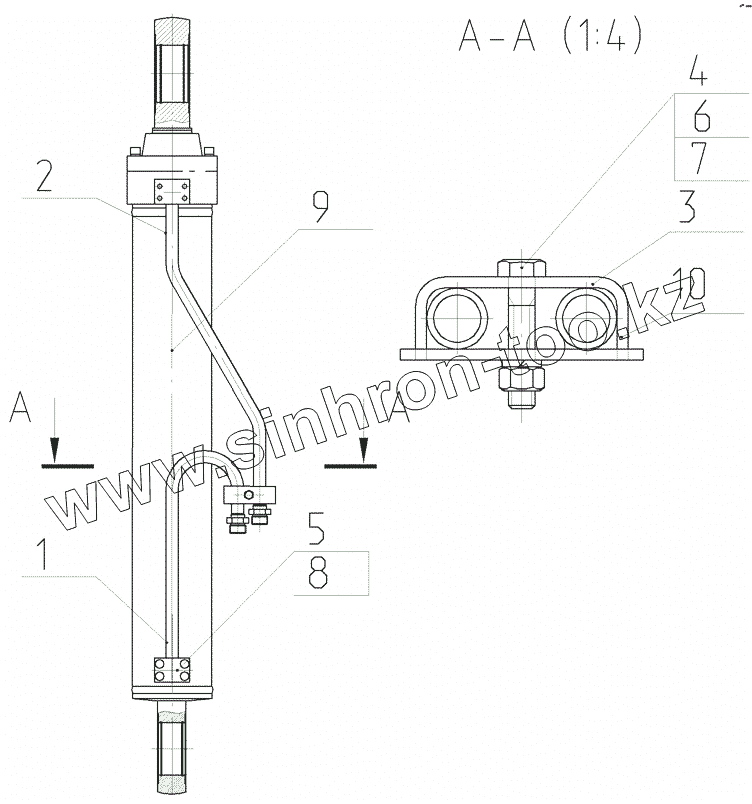 Каталог запасных частей к технике: ЭКСМАШ E240C. Гидроцилиндр стрелы правый в сборе