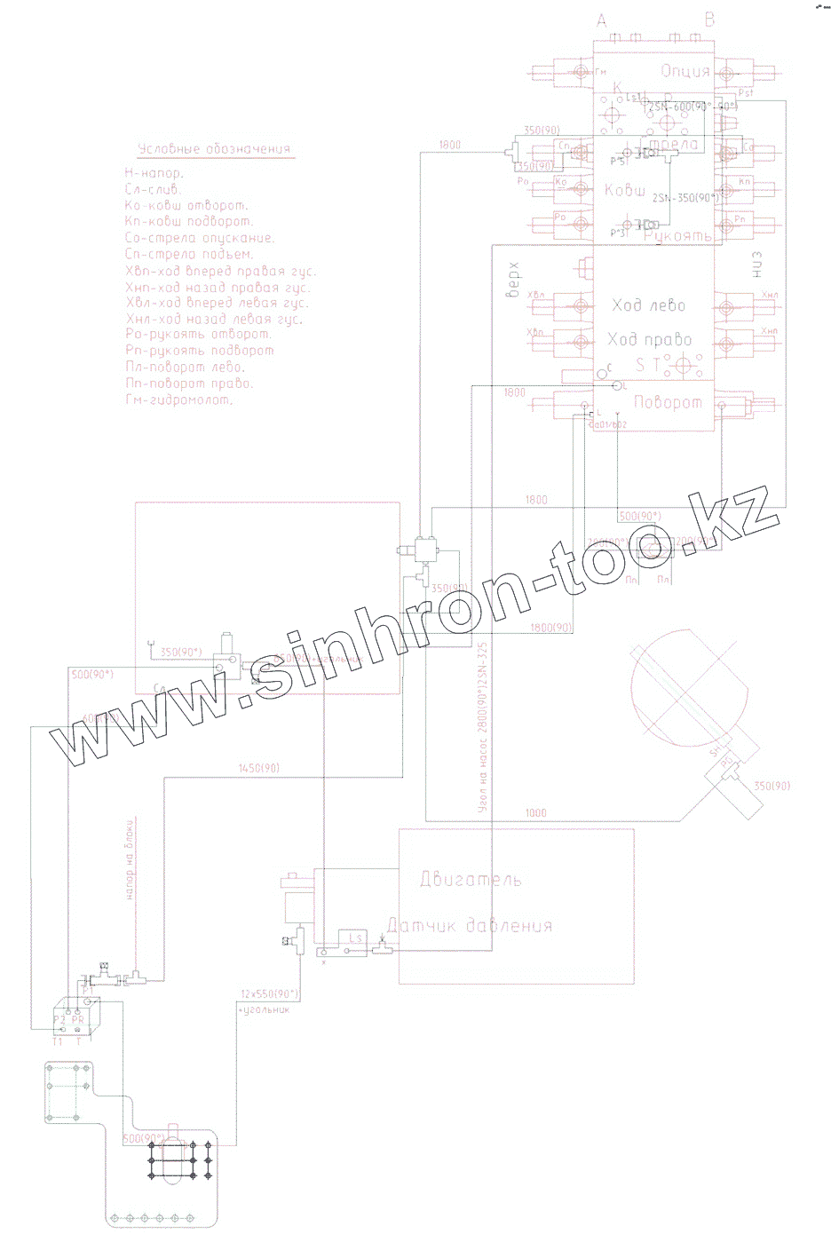 Каталог запасных частей к технике: ЭКСМАШ E240C. Гидроуправление на поворотной платформе