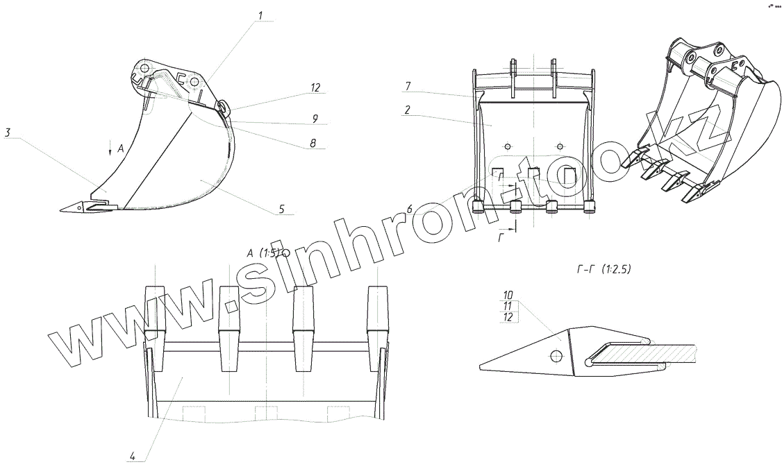 Каталог запасных частей к технике: ЭКСМАШ E240C. Ковш обратной лопаты