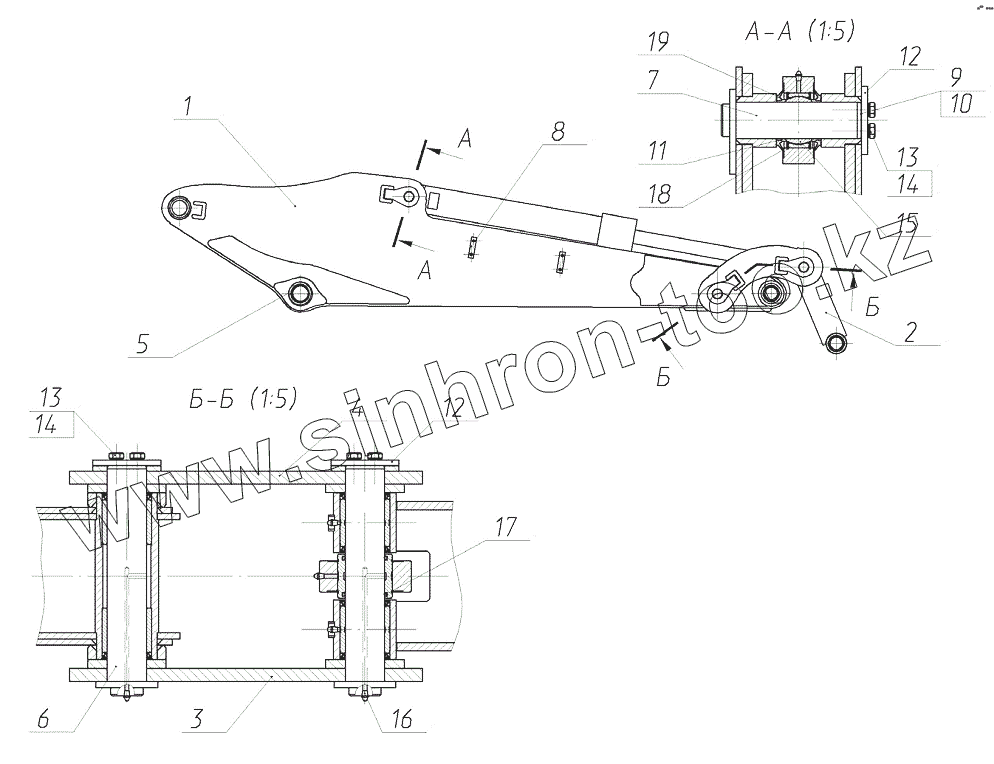 Каталог запасных частей к технике: ЭКСМАШ E240C. Рукоять в сборе с ковшевым механизмом