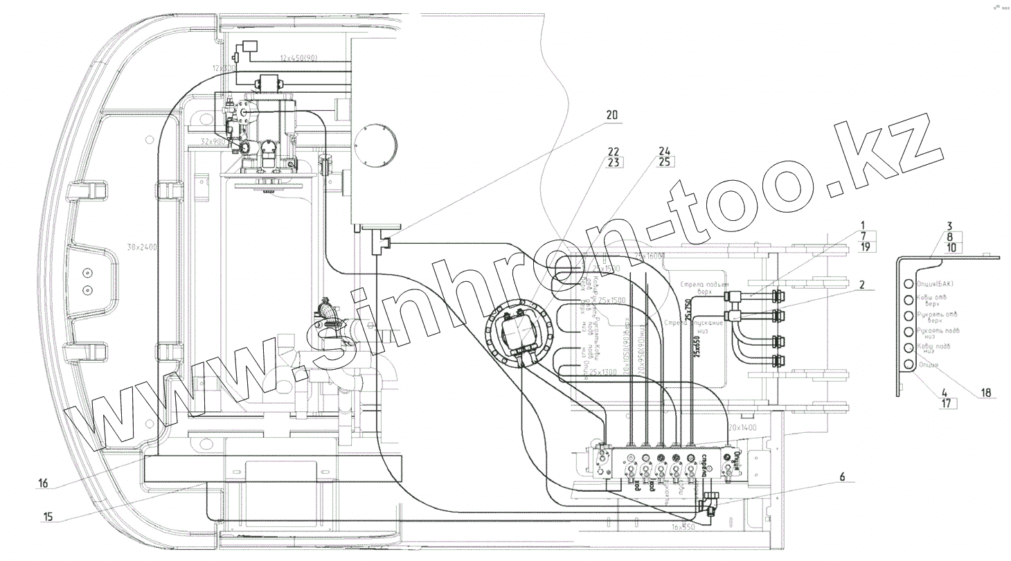 Каталог запасных частей к технике: ЭКСМАШ E240C. Трубопроводы на поворотной платформе