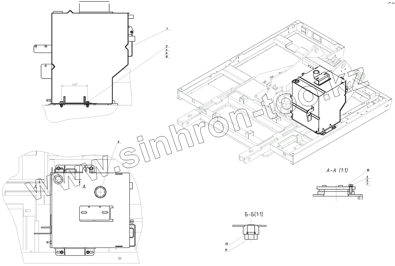 Каталог запасных частей к технике: ЭКСМАШ E240C. Установка бака топливного (280 литров)
