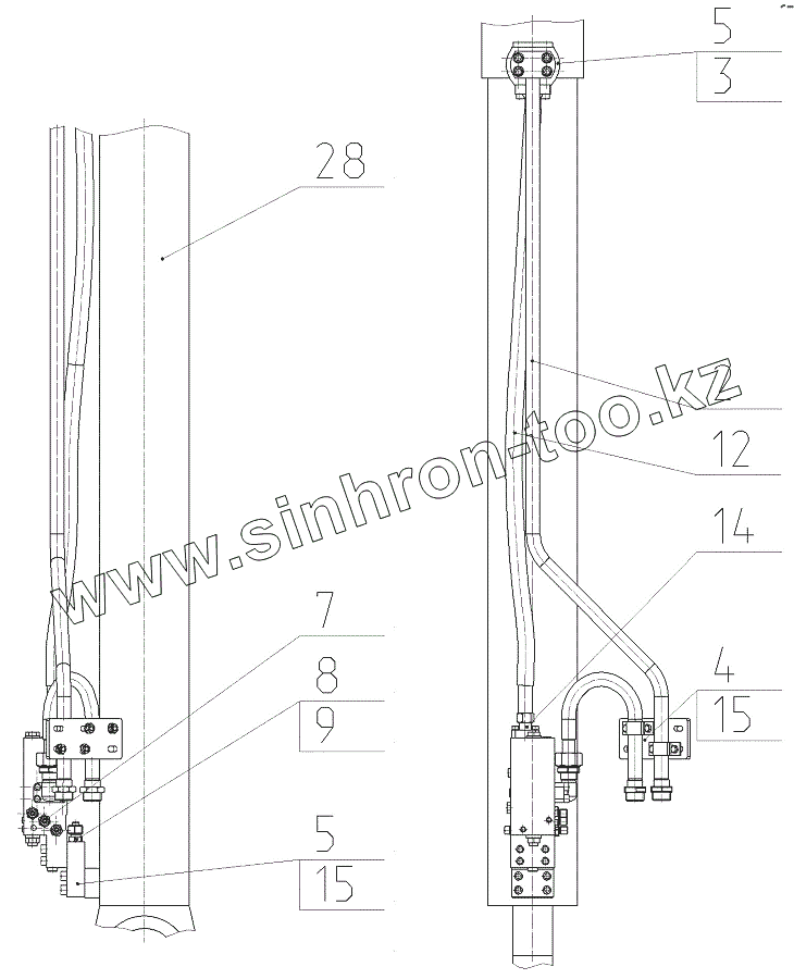Трубопроводы стрелы в сборе с гидроцилиндром