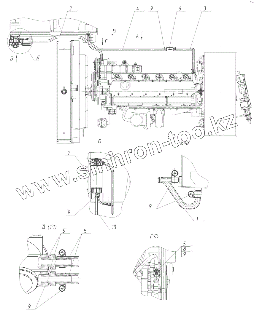 Каталог запасных частей к технике: ЭКСМАШ E280WH. Установка топливопроводов