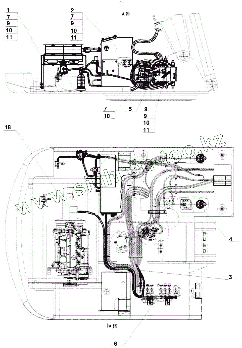 Каталог запасных частей к технике: ЭКСМАШ E300C. Гидрооборудование на поворотной платформе
