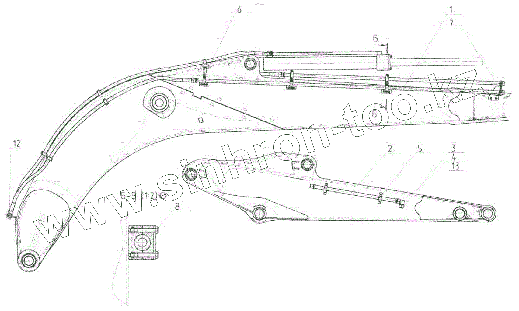 Трубопроводы стрелы в сборе с гидроцилиндром