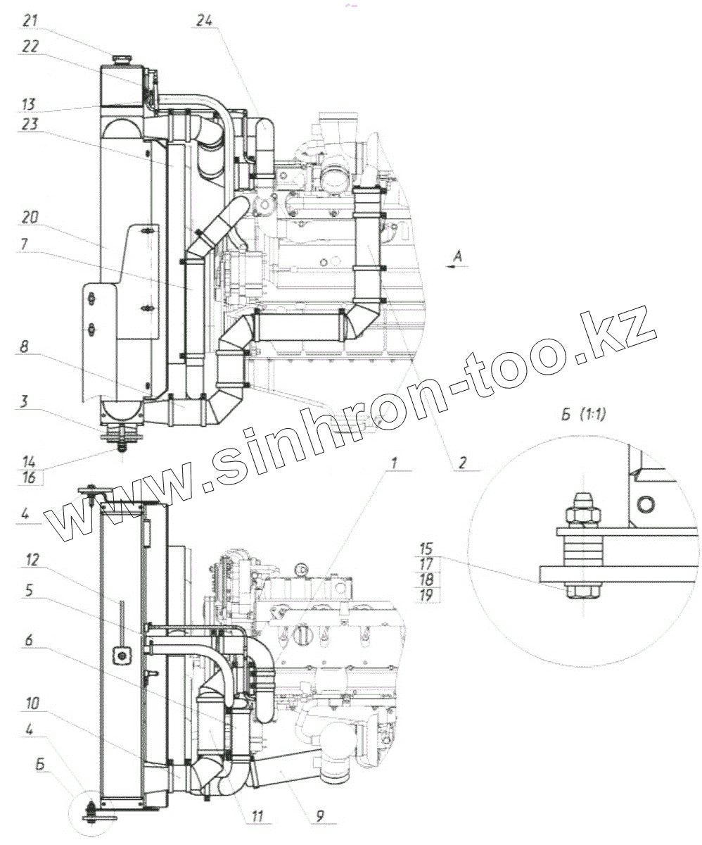 Каталог запасных частей к технике: ЭКСМАШ E300C. Установка блока радиаторов
