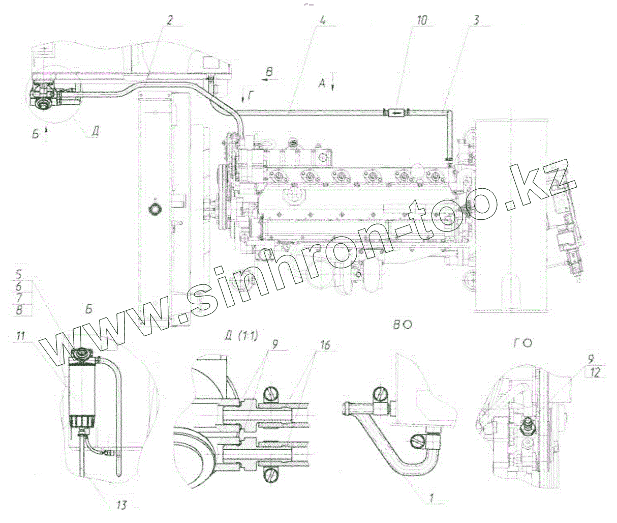 Каталог запасных частей к технике: ЭКСМАШ E300C. Установка топливопроводов