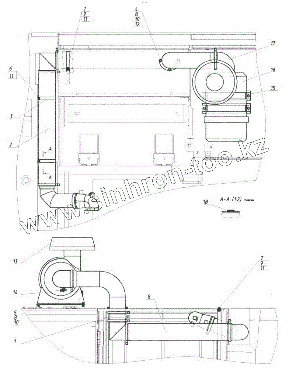 Каталог запасных частей к технике: ЭКСМАШ E300C. Установка воздухоочистителя