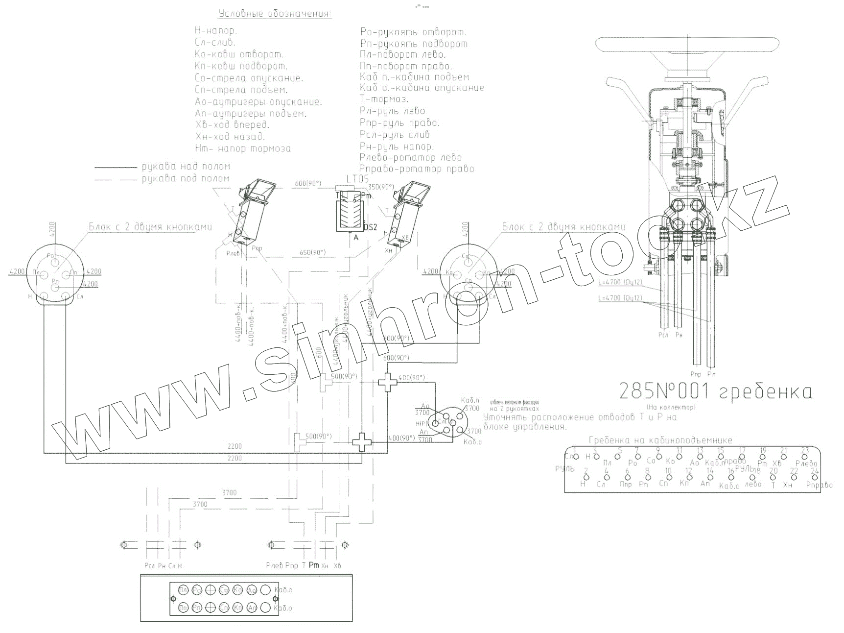 Каталог запасных частей к технике: ЭКСМАШ E350WH. Гидроуправление в кабине экскаватора