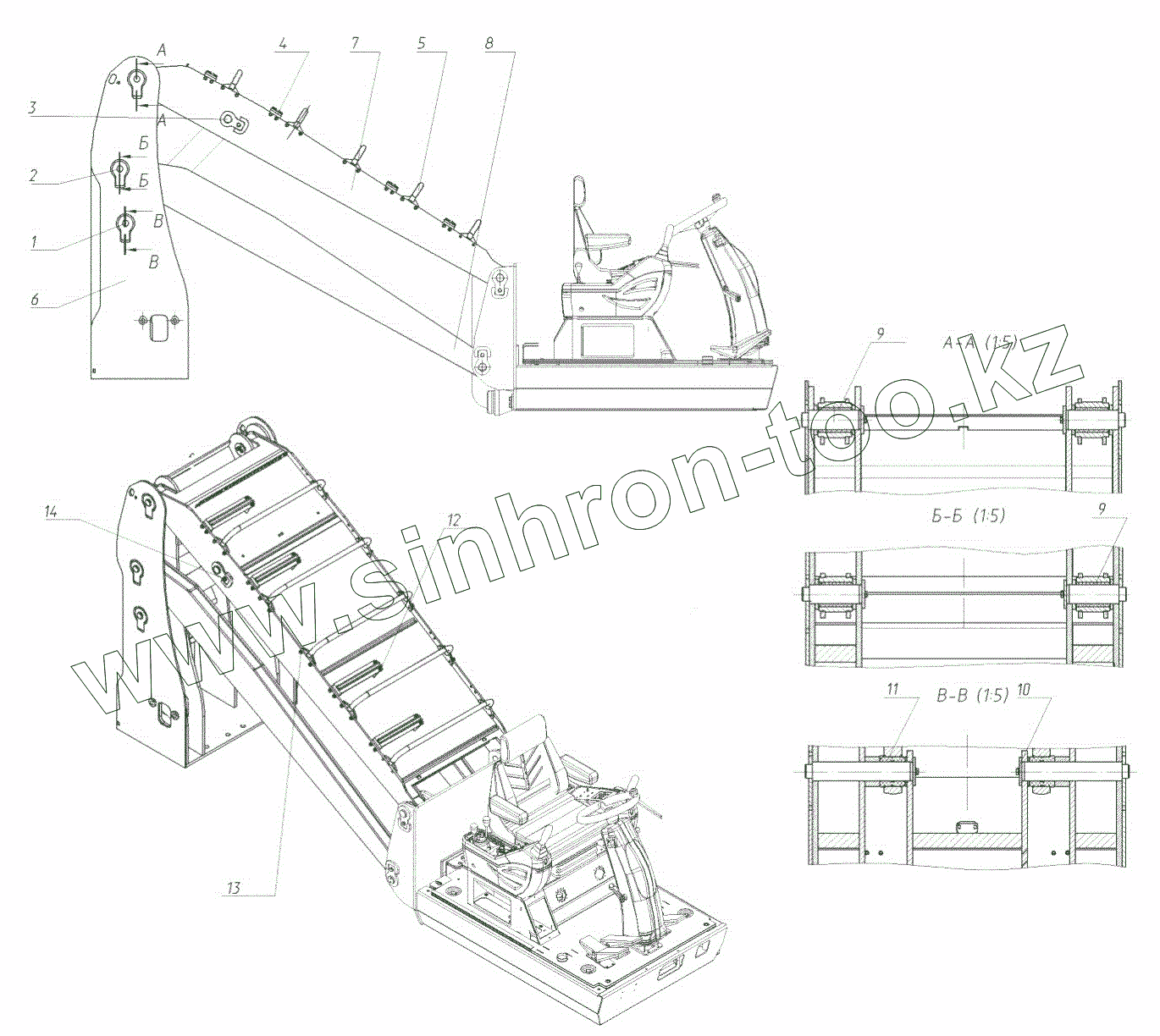 Гидрооборудование стрелы в сборе с гидроцилиндрами
