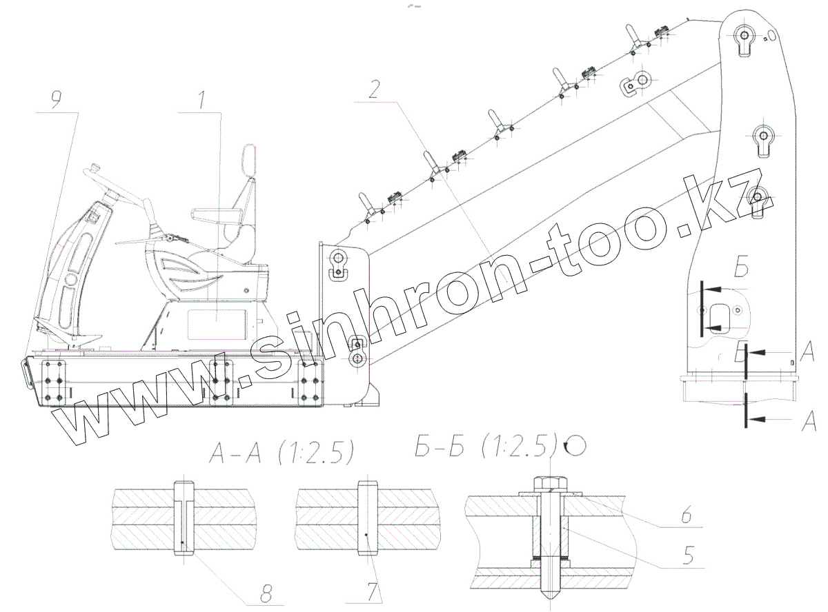 Каталог запасных частей к технике: ЭКСМАШ E350WH. Установка механизма подъема кабины