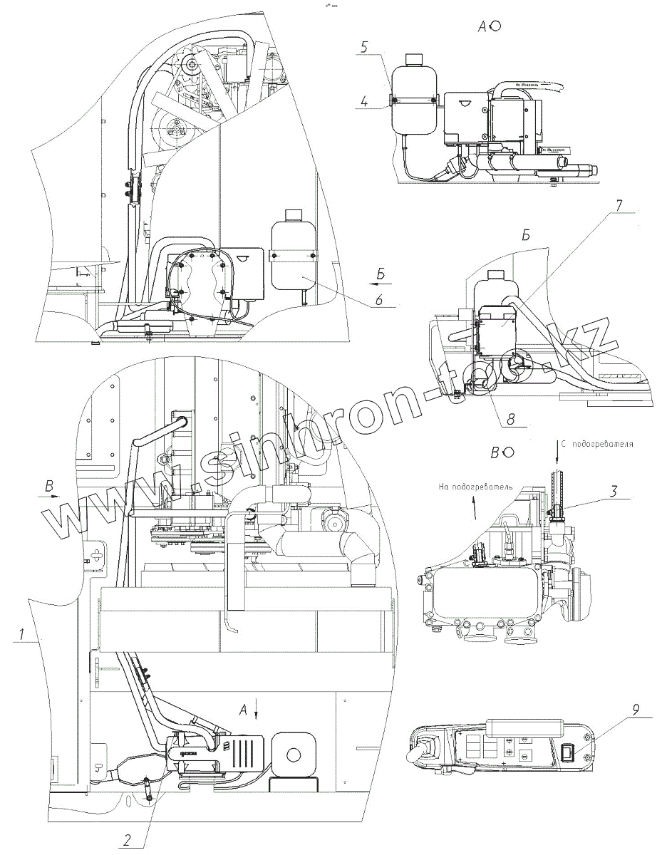 Каталог запасных частей к технике: ЭКСМАШ E350WH. Установка предпускового подогревателя