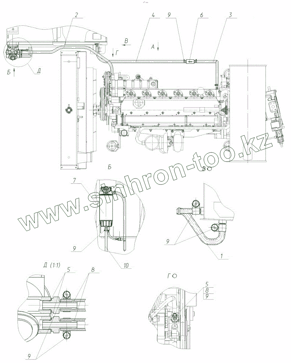 Каталог запасных частей к технике: ЭКСМАШ E350WH. Установка топливопроводов