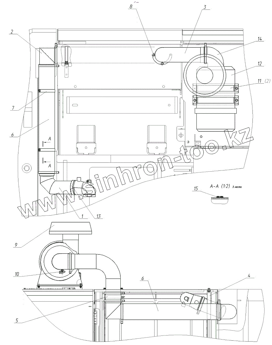 Каталог запасных частей к технике: ЭКСМАШ E350WH. Установка воздухоочистителя