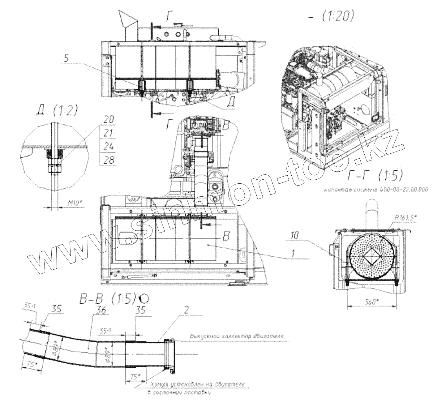 Установка капотной системы 400-00-22.00.000 (Экскаватор Е400С)