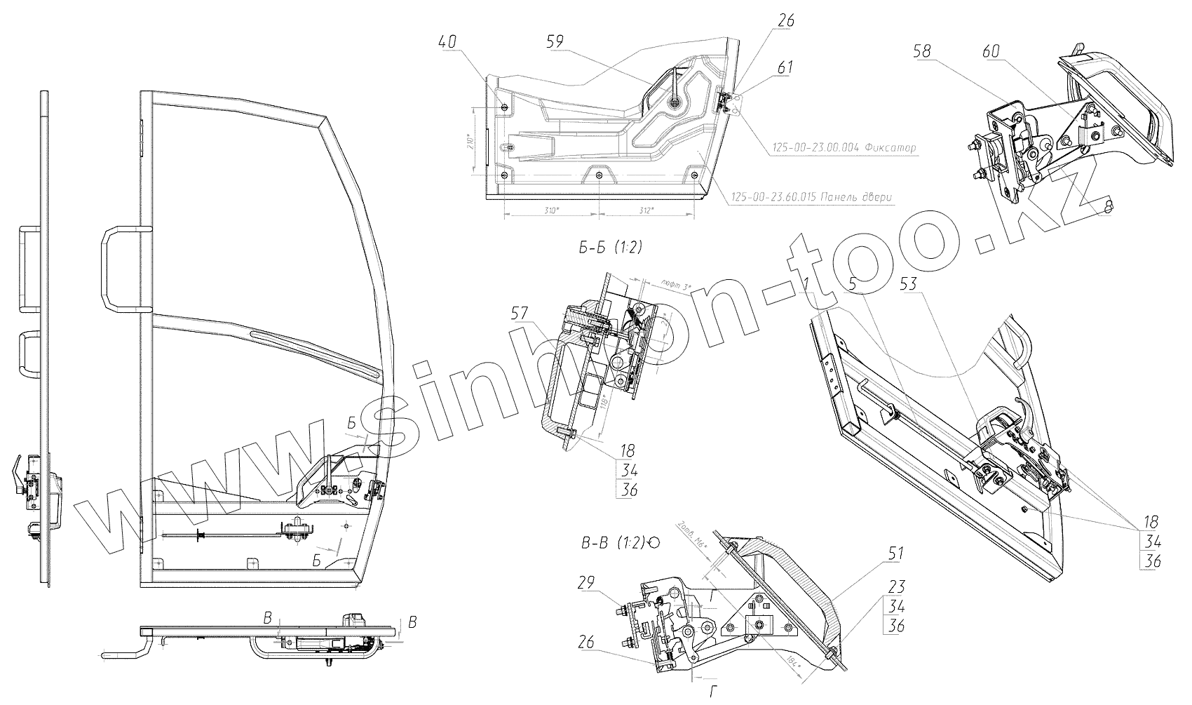 Каталог запасных частей к технике: ЭКСМАШ ЭОВ-3523. Дверь кабины 3523-00-23.40.000