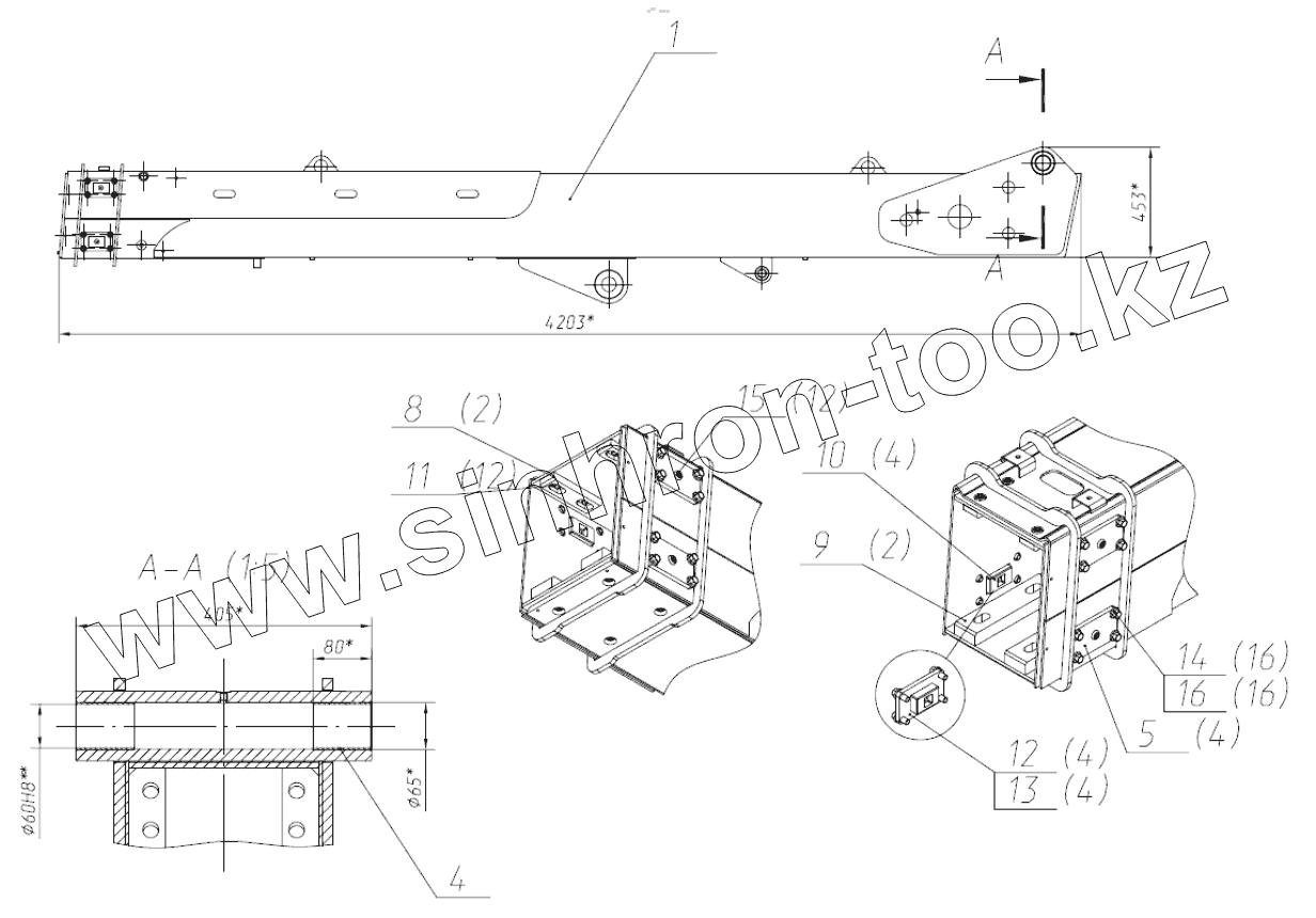 Каталог запасных частей к технике: ЭКСМАШ TLH 3507-12. Стрела внешняя в сборе