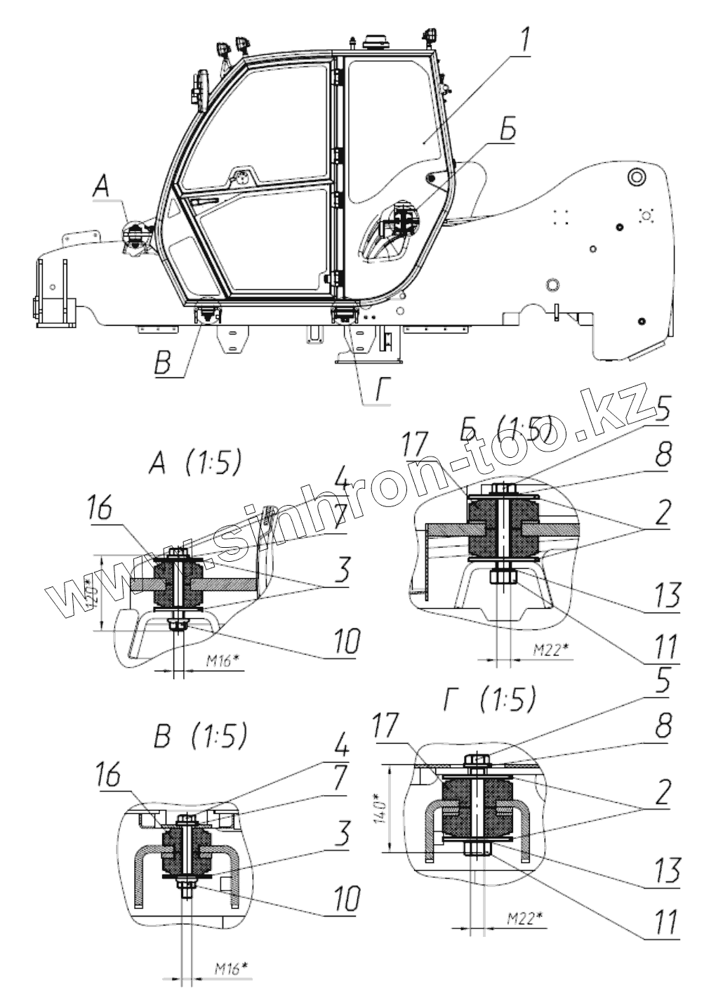 Каталог запасных частей к технике: ЭКСМАШ TLH 3507-12. Установка кабины