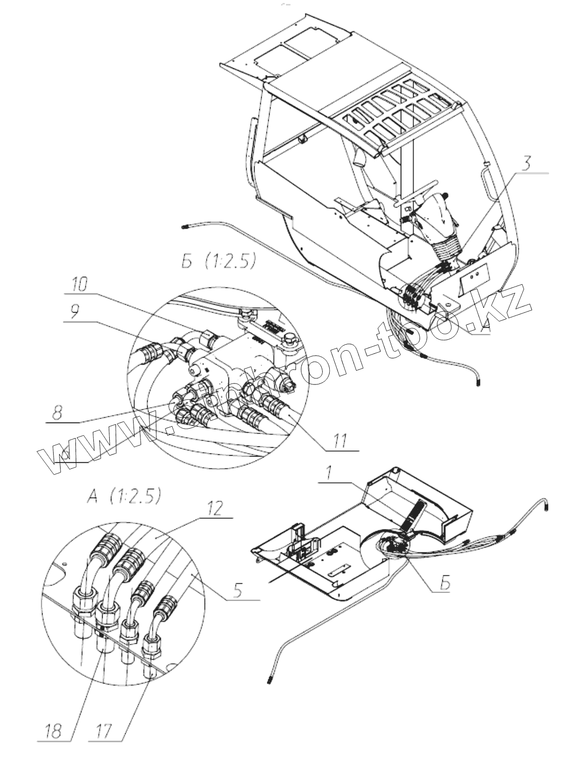 Каталог запасных частей к технике: ЭКСМАШ TLH 3510-11. Гидроуправление в кабине