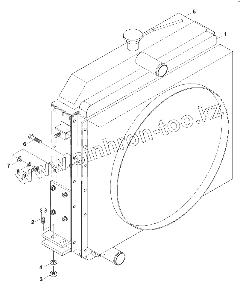Каталог запасных частей к технике: Foton FL917F. 9B650-02B000000A0 Radiator assembly