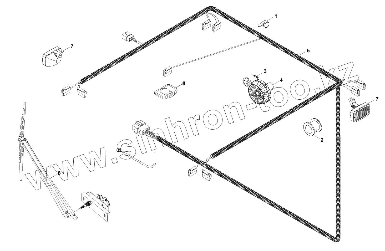 Каталог запасных частей к технике: Foton FL917F. 9B650-63A000000A0 Electrical circuit of the cabin