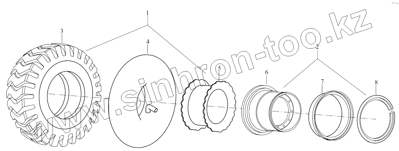 Каталог запасных частей к технике: Foton FL935E. 9D650-34A000000B0 Wheel assembly