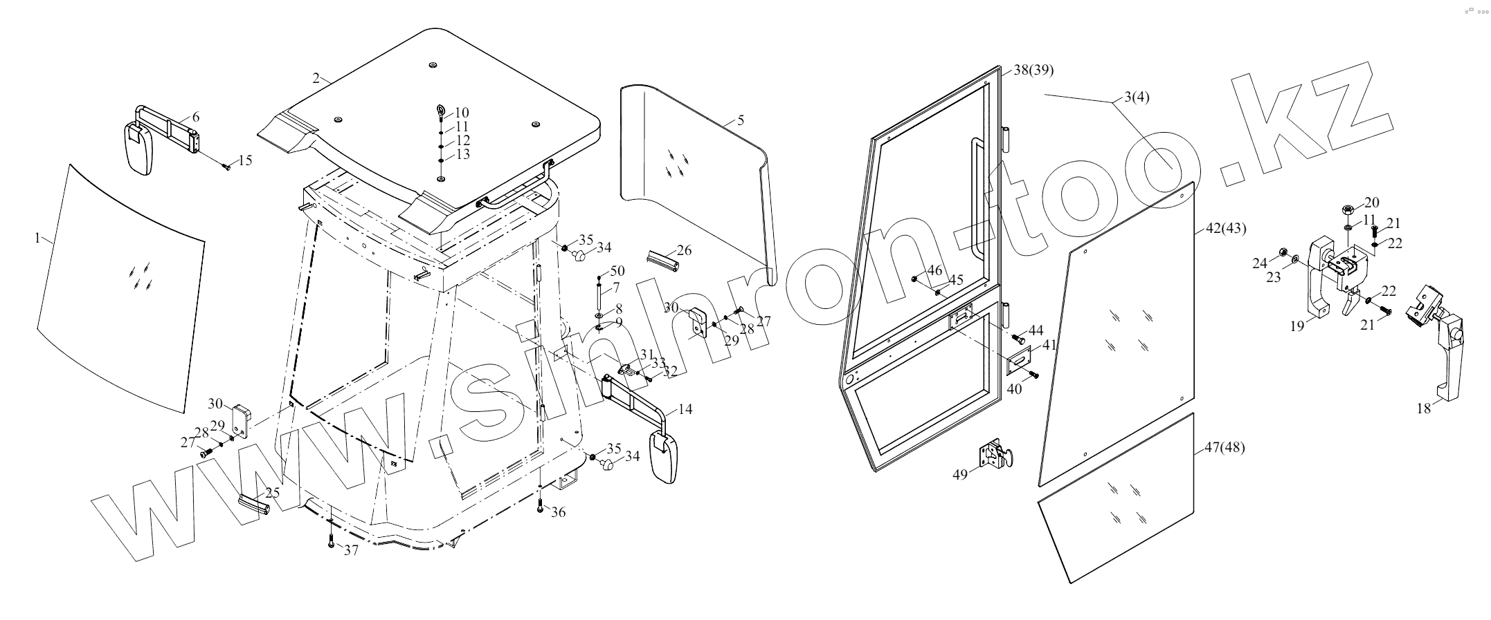 Каталог запасных частей к технике: Foton FL935E. 9D650-45A030000B0 Cab exterior mountings assembly