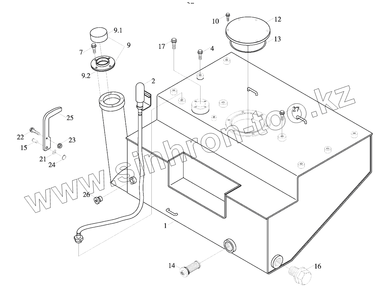 Каталог запасных частей к технике: Foton FL936F (FL936FH4C1B2X1A105). 9D650-08A000000A0 Fuel tank assembling
