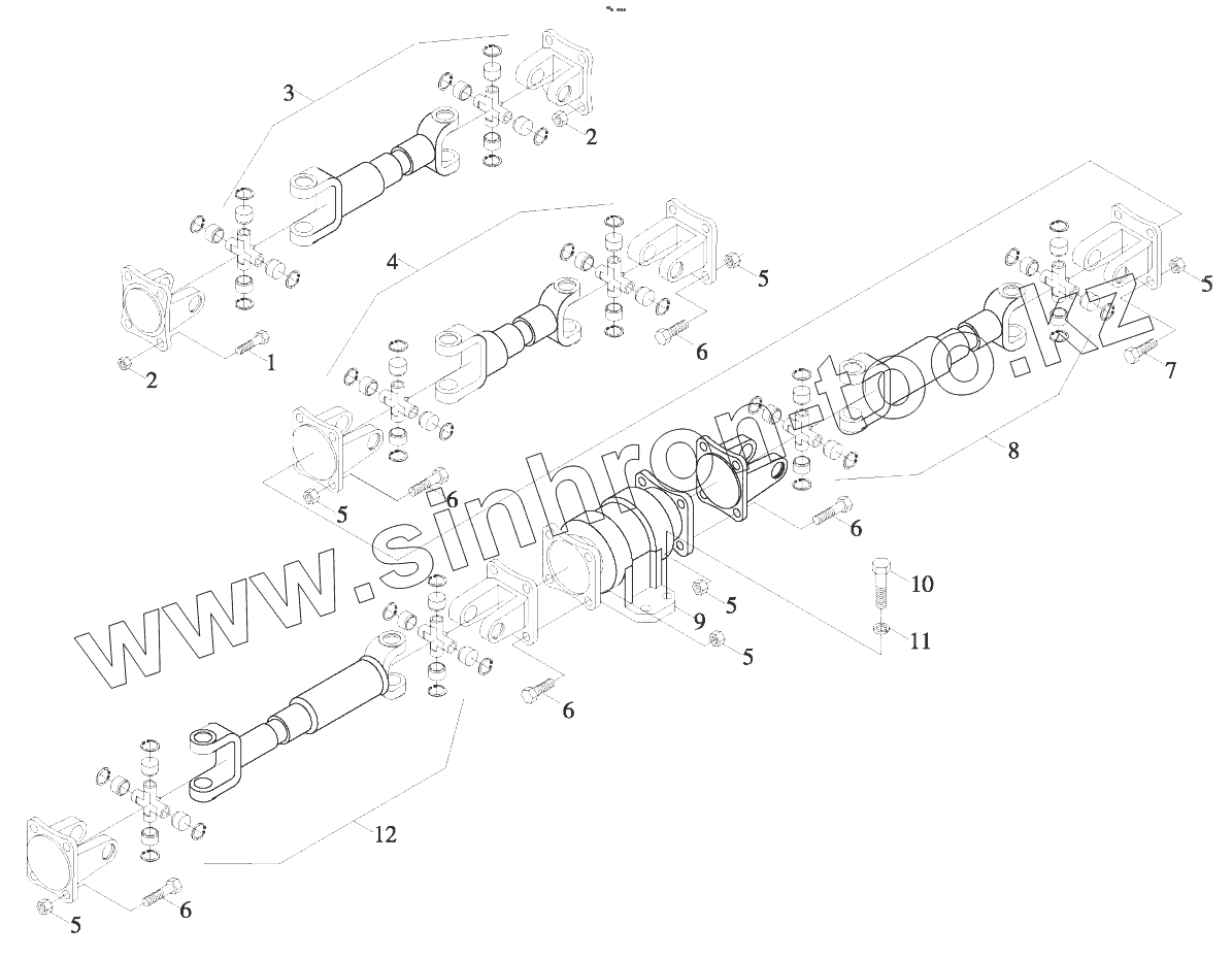 Каталог запасных частей к технике: Foton FL936F (FL936FH4C1B2X1A105). 9D650-25A000000A0 Transmission shaft assembling