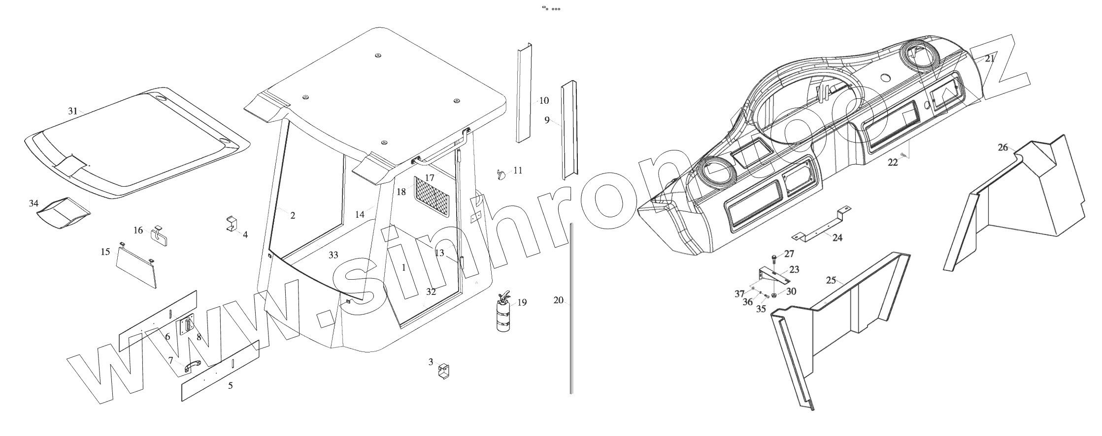 Каталог запасных частей к технике: Foton FL936F (FL936FH4C1B2X1A105). 9D650-45A020000A0 Cab upholstery assembly