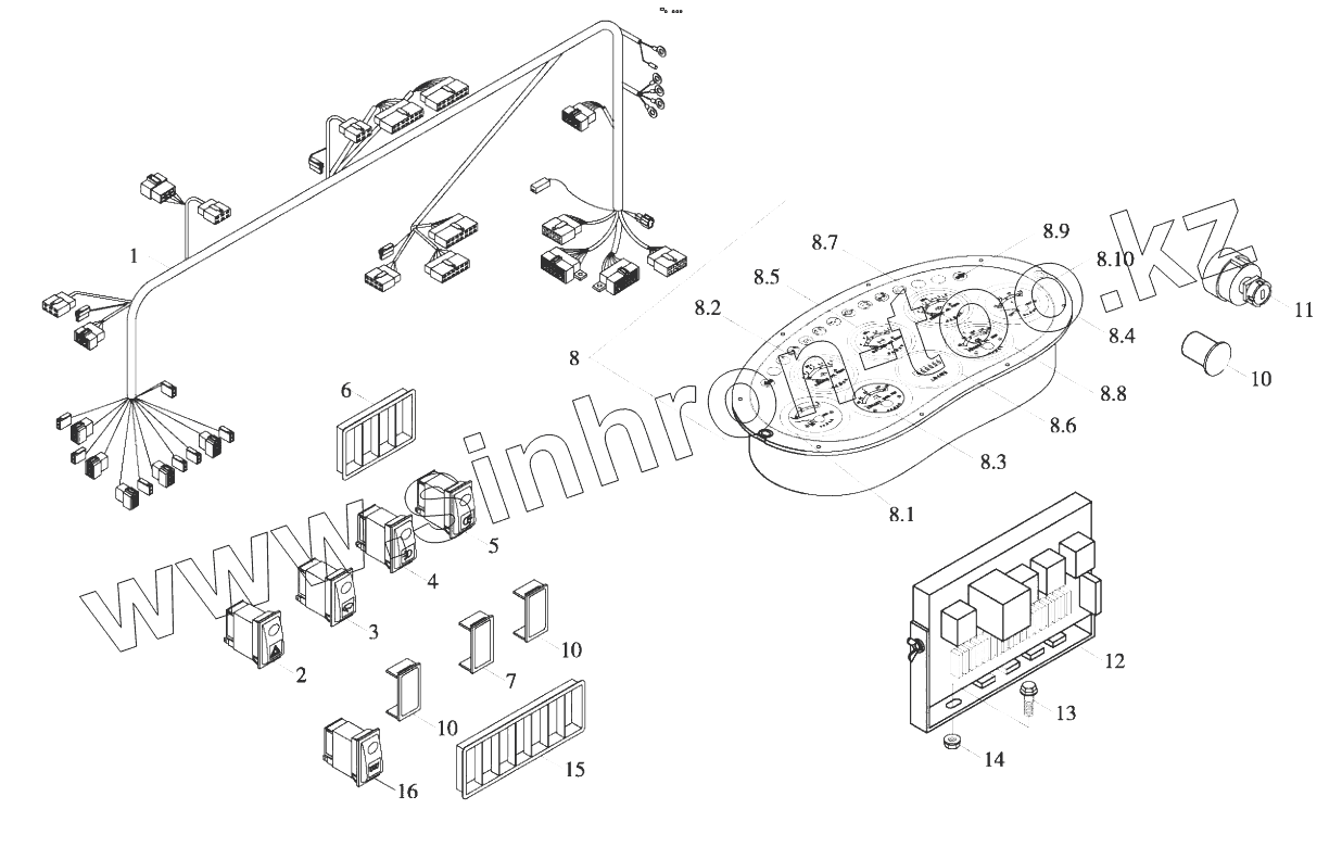 Каталог запасных частей к технике: Foton FL936F (FL936FH4C1B2X1A105). 9D651-66F000000B0 Instrument assembly