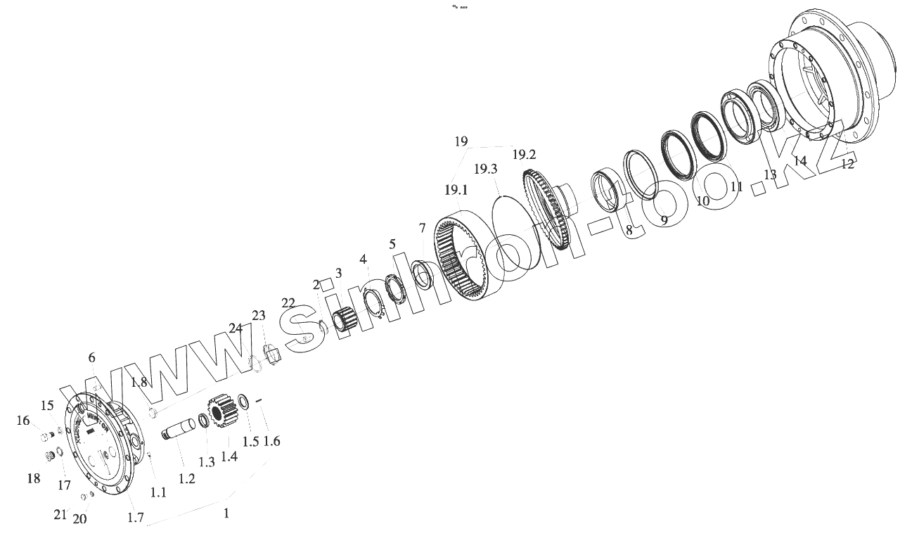 Каталог запасных частей к технике: Foton FL936F (FL936FH4C1B2X1A105). B00256+83351200 Hub Reducer Assembly
