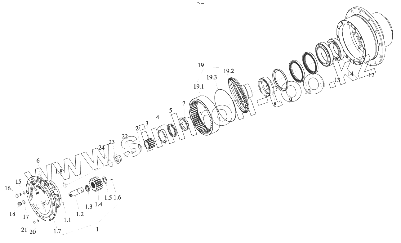 Каталог запасных частей к технике: Foton FL936F (FL936FH4C1B2X1A105). B00256+83351200 Hub Reducer Assembly