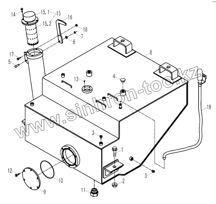 Каталог запасных частей к технике: Foton FL958G. 9F653-08A000000A0 FUEL TANK INTALLATION